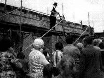 Wie dann die Holz-Spezialisten in ihrer Kluft zu dritt oder zu viert vor den Bindern knieten und einen nach dem anderen im Gleichtakt hämmernd gebrauchsfähig machten, dieses Bild steht mir heute noch vor Augen. Überhaupt, es war ein Erlebnis, so viele Könner, Menschen mit goldenen Händen, für dieses Vorhaben wirken zu sehen.